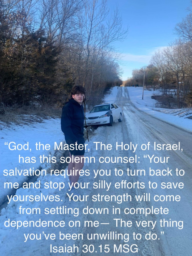 “God, the Master, The Holy of Israel, has this solemn counsel: ‘Your salvation requires you to turn back to me and stop your silly efforts to save yourselves. Your strength will come from settling down in complete dependence on me— The very thing you’ve been unwilling to do. You’ve said, ‘Nothing doing” Isaiah 30:15 – MSG