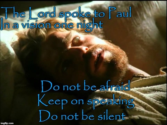 “And the Lord said to Paul one night in a vision, “Do not be afraid, but go on speaking and do not be silent,” Acts 18:9 ESV